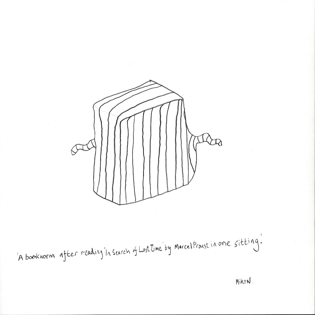 A bookworm after reading "In Search of Lost Time" by Marcel Proust in one sitting